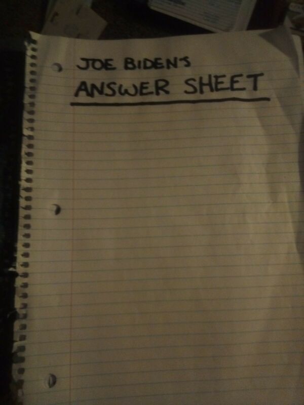 Joe Biden''s Answer Sheet(to any important question!) President Donald Trump 2020