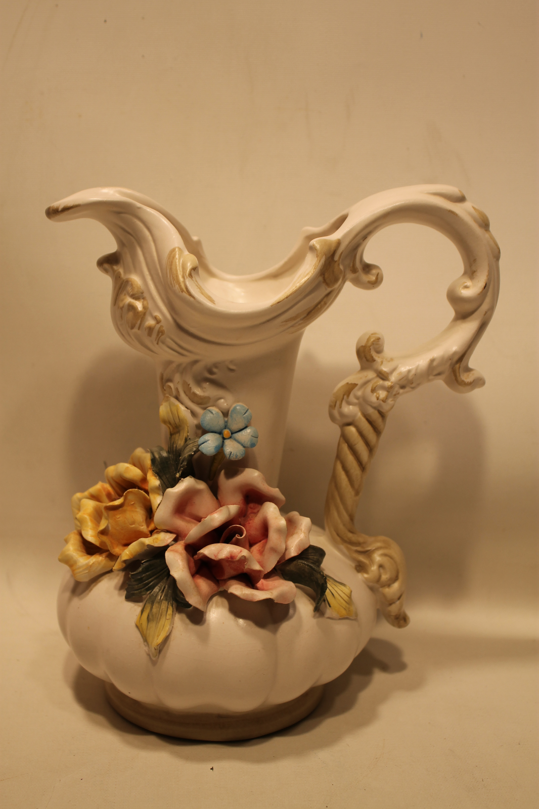 Title (ebay affiliate link): VINTAGE CAPO DI MONTE ITALY HAND SCULPTED APPLIED FLORAL ON AN ORNATE PITCHER