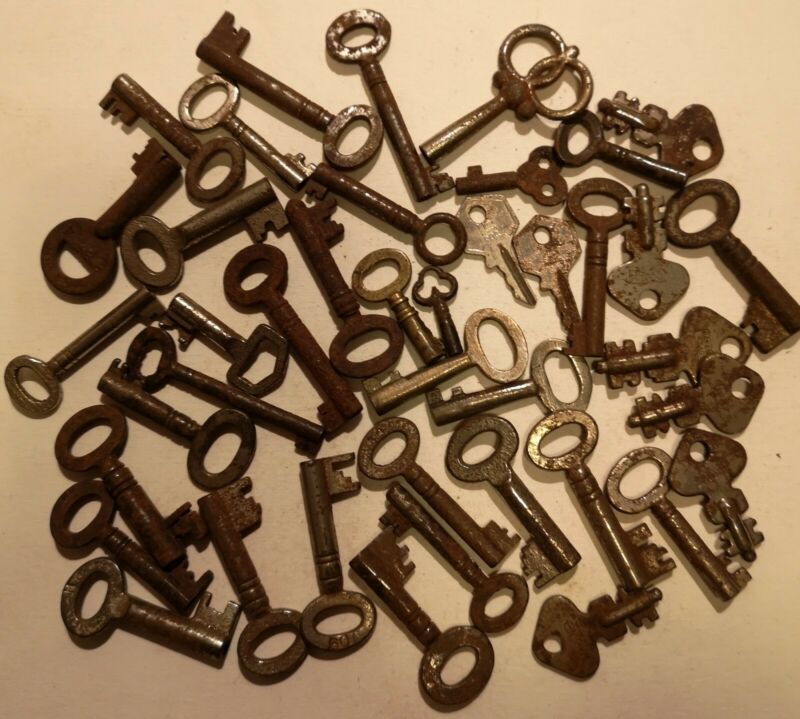 42 x Small Medium Old Antique Vintage Keys Padlock Door Box Lots Set Charms