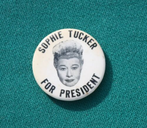 Title (ebay affiliate link): Great 1940s SOPHIE TUCKER for PRESIDENT Pin Back Button, clean!