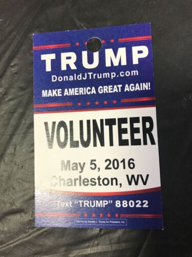 Title (ebay affiliate link): DONALD TRUMP Volunteer Credentials CHARLESTON WV 5/5/16 TRUMP RALLY #MAGA !