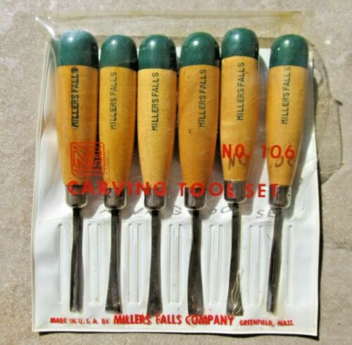 Title (ebay affiliate link): 6 VINTAGE MILLER FALLS CHISELS CARVING HAND TOOL SET No. 106