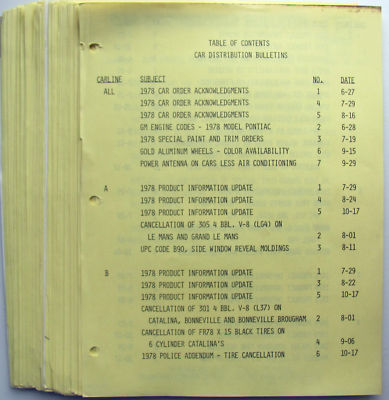 Title (ebay affiliate link): 1978 Pontiac Dealers' Car Distribution Bulletins: Rare!
