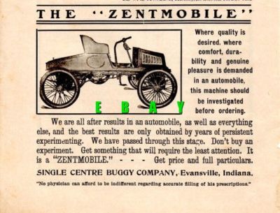Title (ebay affiliate link): 1904 ZENTMOBILE CAR AD-SINGLECENTRE BUGGY CO-EVANSVILLE