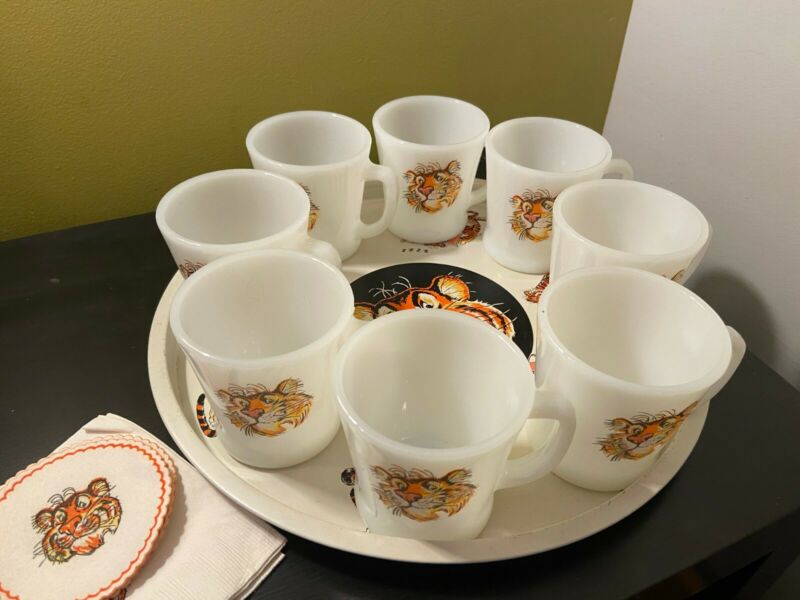 Vintage Anchor Hocking Fire King Esso Mugs + Tray