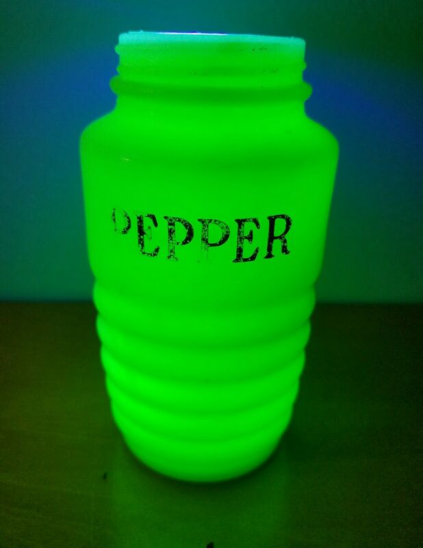 Title (ebay affiliate link): Jadeite Pepper Shaker Glows Uranium, No lid, Green Depression Glass, Jadite NR