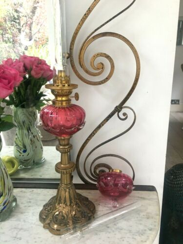 antique cranberry peg lamp (2) on brass base