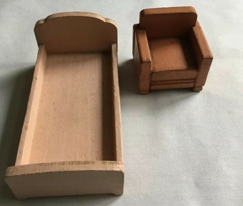 Title (ebay affiliate link): 2 Vintage Wooden Strombecker Dollhouse Furniture Chair Bed