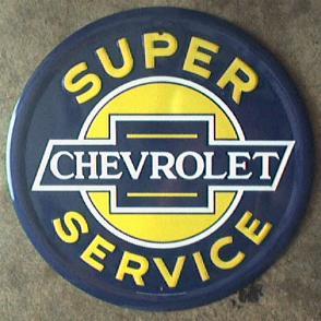 ROUND SUPER CHEVROLET SERVICE METAL SIGN NR