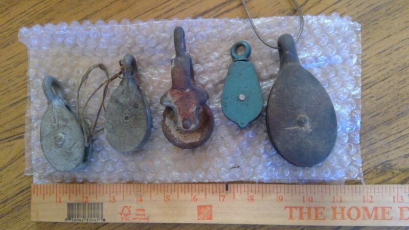 Title (ebay affiliate link): 5 older single wheel pullies rope pulley small