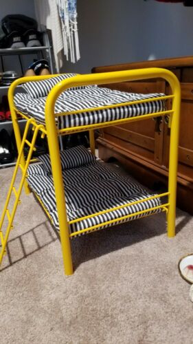 Title (ebay affiliate link): American Girl Doll Vintage Yellow Bunk Beds Striped Mattress Pillows