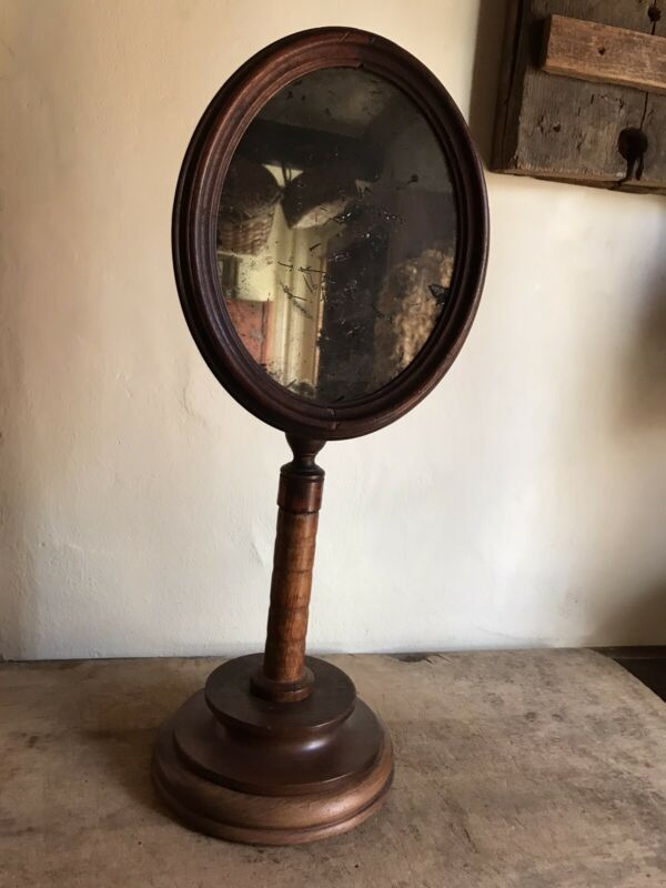 Tall Early Antique Table Top Stand Dresser Shaving Mirror Wooden Patina AAFA