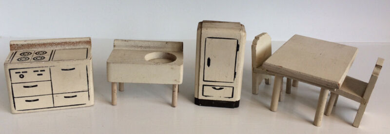 Title (ebay affiliate link): Vintage Strombecker Wood Dollhouse Furniture White Kitchen Set