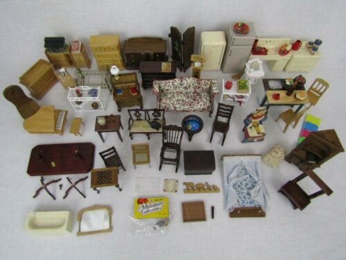 Vintage to Modern Dollhouse Miniature Wood Wooden Furniture Chairs Food Lot A