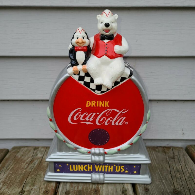 Title (ebay affiliate link): Coca-Cola Ceramic Cookie Jar - Lunch With Us, Polar Bear & Penguin 2001