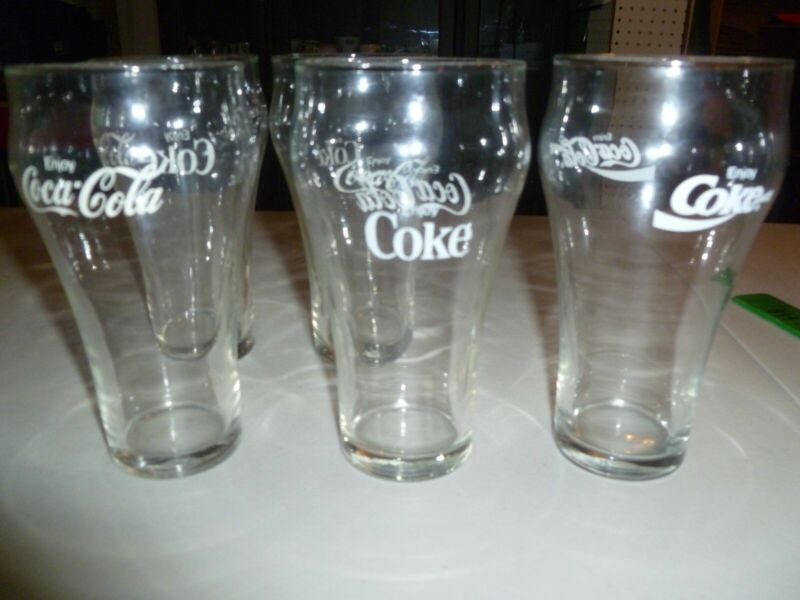 5 Vintage Coca Cola Coke Clear Bell Shape Drinking Glasses 16 oz