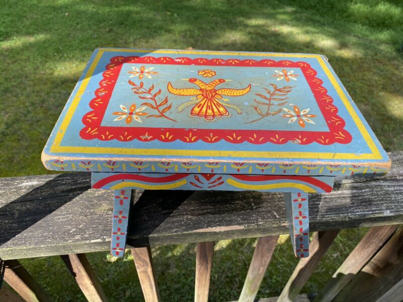 Title (ebay affiliate link): Americana Primitive Folk Art Painted Stool Pennsylvania Dutch Double Distelfink