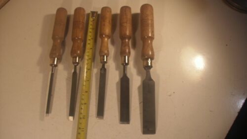 Title (ebay affiliate link): Joblot, 5 vintage ash handle firmer chisels, 3 Marples Shamrock