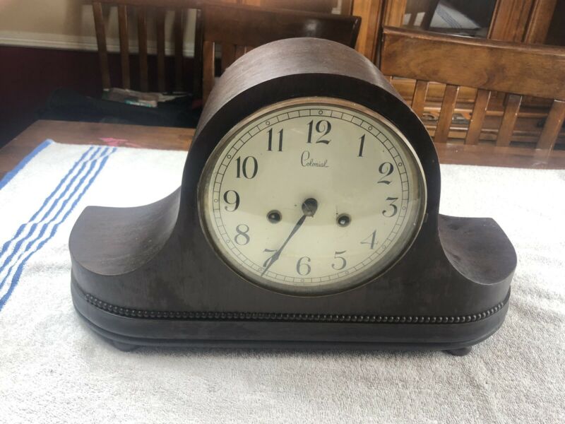 Title (ebay affiliate link): ANTIQUE COLONIAL GERMAN MANTLE CLOCK UNIQUE CASE shelf mantel vintage