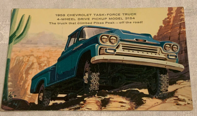 Title (ebay affiliate link): VTG 1958 Chevrolet Task Force Truck 4-Wheel Drive Pickup Model 3154 Postcard