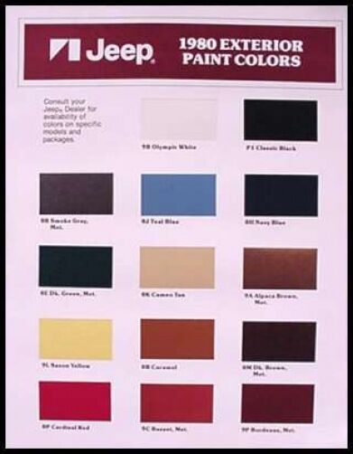 Title (ebay affiliate link): 1980 AMC Jeep Color Paint Chips Brochure