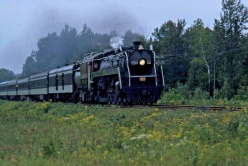 ORIGINAL KODACHROME CANADIAN NATIONAL RWY STEAM ACTION 4-8-2 # 6060 AUG 1975