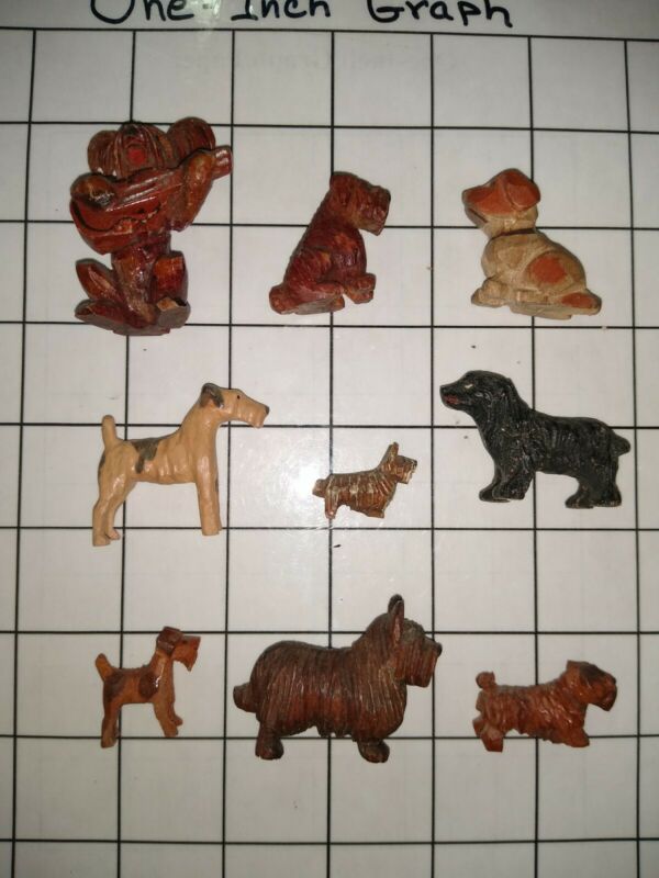 9 Vintage Hand Carved Miniature Wooden Dog Figurines