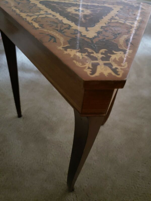 Antique Vintage Italian Floral Inlaid Triangle Music Box Table