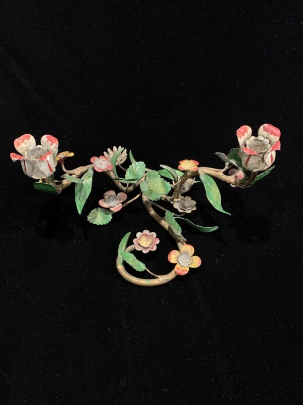 Title (ebay affiliate link): Antique Italian ToleToleware Metal Candlestick Holder Table Top Floral Painted