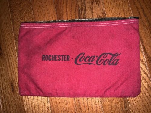 vintage ROCHESTER, NY Coca Cola canvas zippered RED Bank Bag