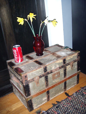 Title (ebay affiliate link): Small Antique Canvas Flat Top Child's Trunk...Ca. 1900