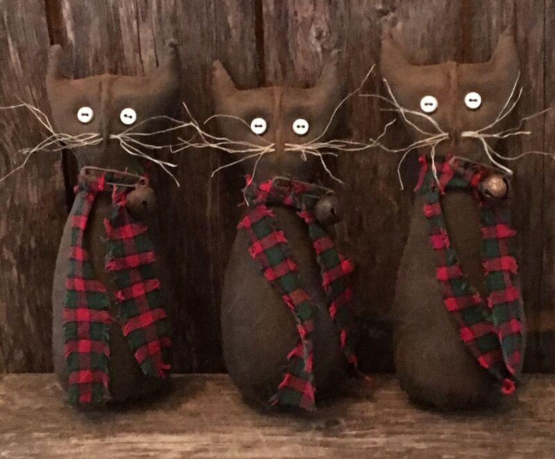 Title (ebay affiliate link): Primitive Trio Christmas Cats/Kitty Doll Cat Shelf Sitter Ornies
