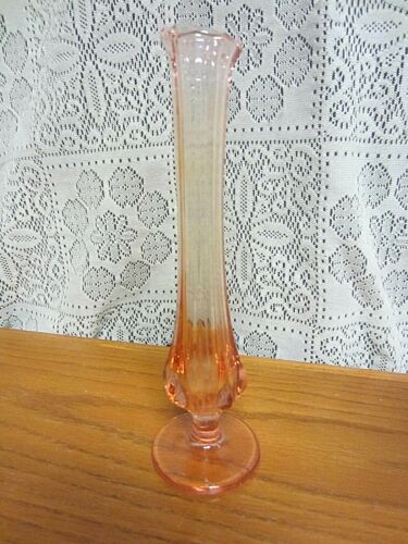 Title (ebay affiliate link): 8 1/2" Vintage Pink Depression Glass Small Bud Vase-Ribbed & Scalloped Top