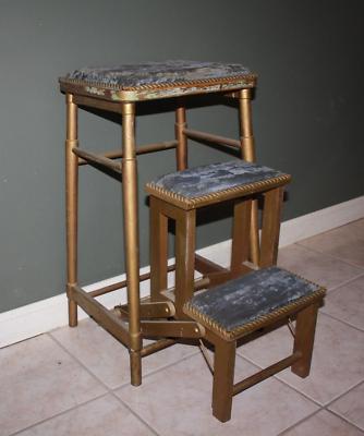 RARE ANTIQUE SPRING LOADED STEPSTOOL
