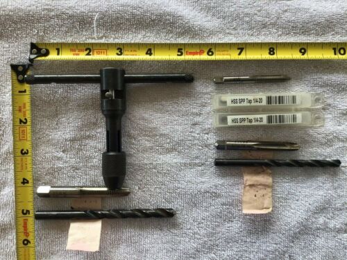 Title (ebay affiliate link): TRW No. 338 Ratcheting Reversible Machinist T Handle and 7 assorted drill/taps