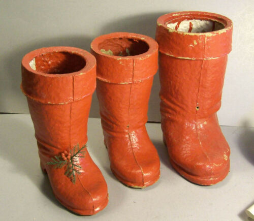 Title (ebay affiliate link): 3 Big Old Paper Mache, Pressed Pulp, Santa Claus Boots