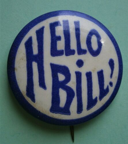 "HELLO BILL" Pinback Button promoting William Howard Taft for president in 1908,