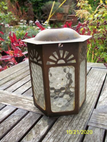 Vintage Art Deco Metal & Glass Small Lantern Lampshade - 1930''s Sunburst Design.