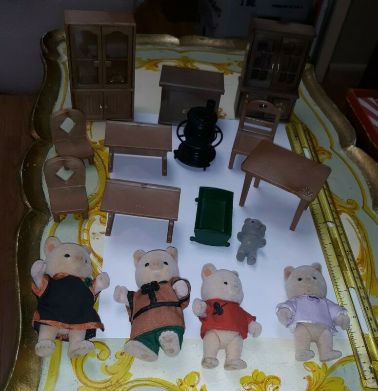 Title (ebay affiliate link): VINTAGE BANDAI SYLVAN MAPLETOWN PIGS FAMILY & SCHOOL DOLL HOUSE FURNITURE LOT