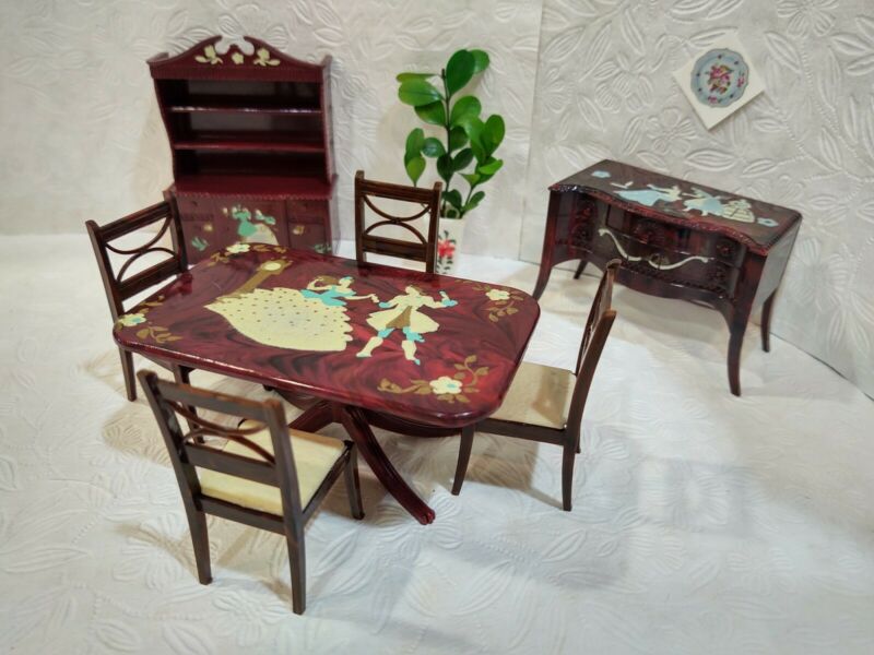 Title (ebay affiliate link): MINT STENCILED DINING ROOM SET Renwal Vintage Miniature Dollhouse Furniture