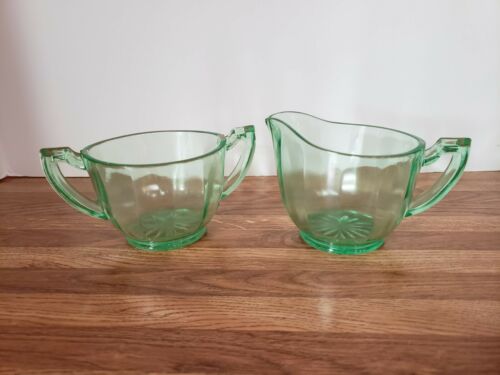 Title (ebay affiliate link): Vintage Depression Green Vaseline/Uranium Paneled Pattern Sugar Bowl/Creamer