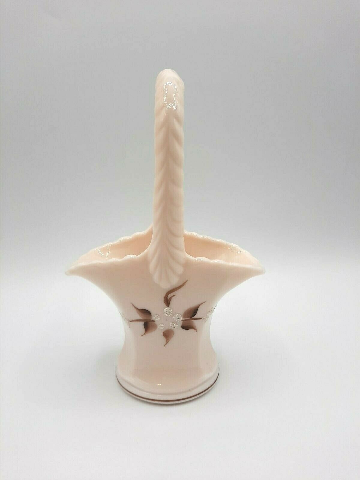Title (ebay affiliate link): Vintage Westmoreland Almond Custard Glass Basket Hand Painted Flowers Signed