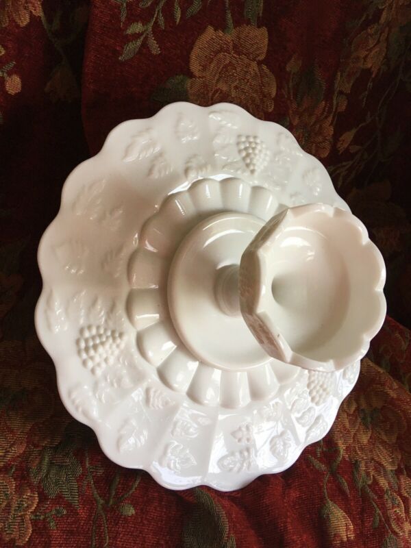 Pedestal Cake Plate, Paneled And Grape Westmoreland Milk Glass~ Vintage