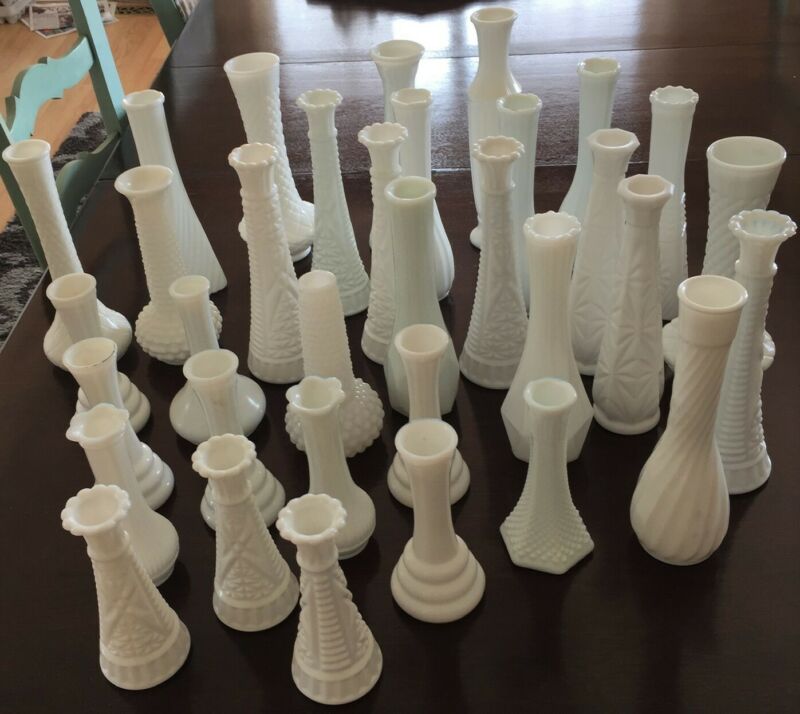 Title (ebay affiliate link): Vintage Milk Glass Bud Vases Lot of 6 Beautiful Wedding Decor Farmhouse
