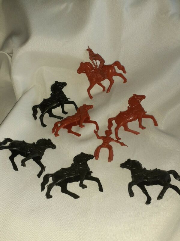 Title (ebay affiliate link): Vintage Lot Toy Plastic Horses Western Pony Saddled Tan and Black