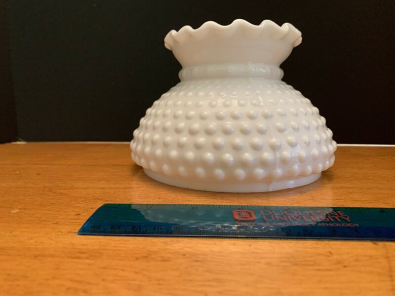 Title (ebay affiliate link): WHITE MILK GLASS HOBNAIL Hurricane Lamp Shade w/Ruffled Top 6" Fitter