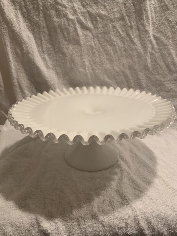 Vintage 13" Fenton Milk Glass Silver Crest Footed Pedestal Cake Plate Stand S2S
