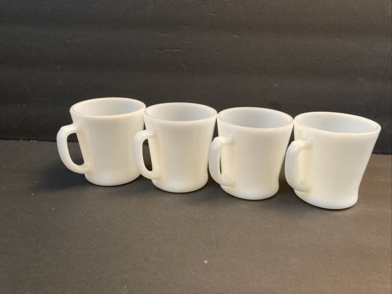 Title (ebay affiliate link): 4 Vintage Anchor Hocking FIRE KING White Milk Glass D-Handle Cups Mug USA