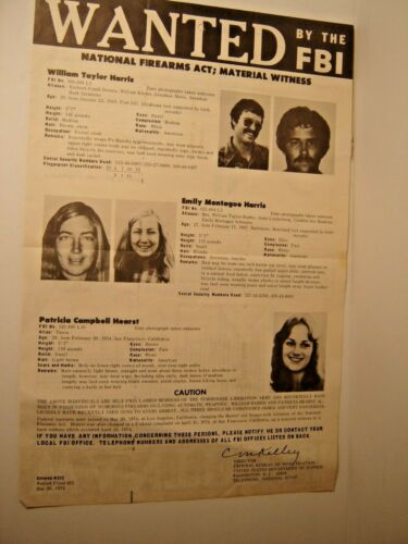 Title (ebay affiliate link): RARE! ORIGINAL PATTY HEARST WANTED BY THE FBI POSTER-Symbionese Liberation Army