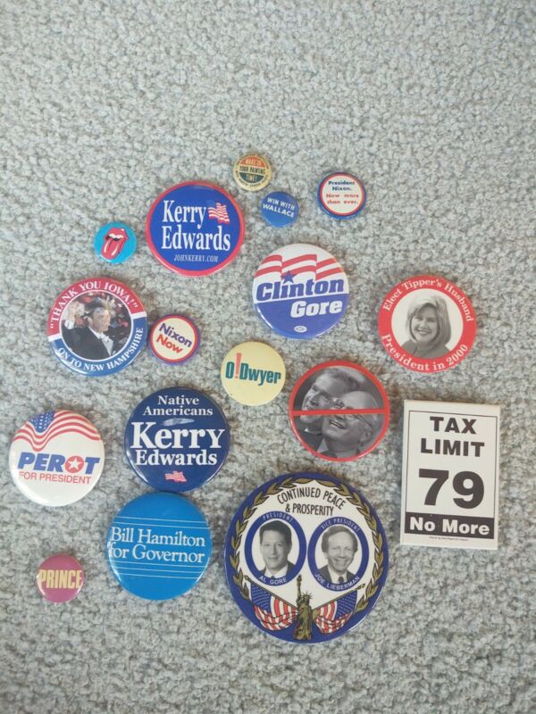 Title (ebay affiliate link): Vtg Political Campaign Pins Buttons Nixon, Wallace, Edwards, Perot, ETC 17 pc